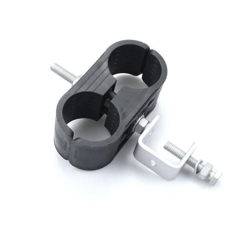 The 2-Way Feeder Clamp for 7/8″ Feeder Cable is a robust hardware solution designed to handle the substantial weight and wind load of dual large-diameter transmission lines. It is specifically sized to fit the outer diameter of standard 7/8″ corrugated (annular or helical) coaxial cables, such as LDF5-50A, AVA5-50, or equivalent 50 Ohm feeder lines. The assembly consists of two high-impact, UV-resistant polypropylene (PP) saddles secured within a heavy-duty SUS304 stainless steel C-bracket.