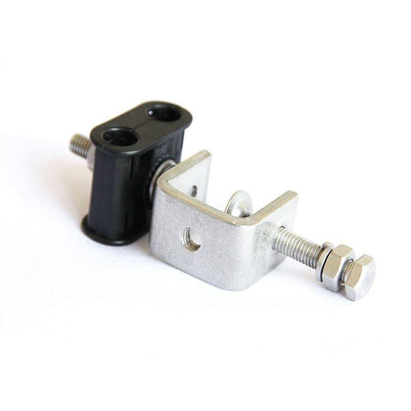 The 2-Way Feeder Clamp for LMR-400 is a professional-grade mounting solution designed to maximize cable density while maintaining mechanical stability. It is specifically sized to accommodate the outer diameter of LMR-400 series cables (approx. 10.29mm). The assembly consists of two independent UV-resistant polypropylene (PP) saddles held within a high-grade SUS304 stainless steel C-bracket, allowing two separate cables to be secured in a single vertical or horizontal row.