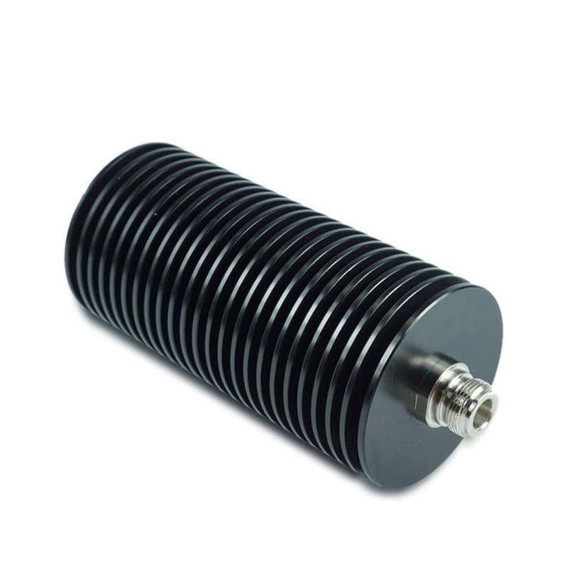 The attenuator features a rugged N-Type Male to N-Type Female inline configuration with a high-reliability threaded coupling. To effectively manage the significant heat generated by 100W of power, the device is housed in a large-format anodized aluminum heat-sink body with longitudinal cooling fins. This design ensures maximum thermal dissipation and prevents attenuation drift during high-duty-cycle operations. Manufactured with premium PTFE dielectric and high-stability resistive film, it maintains exceptional frequency flatness and low VSWR throughout its service life.