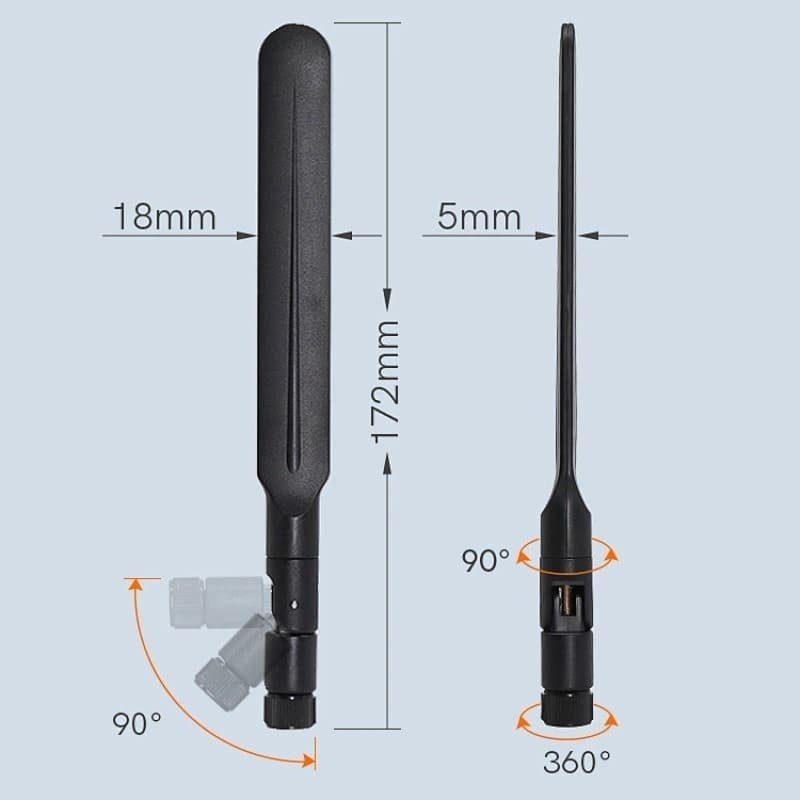The antenna features a flexible whip design with a high-reliability swivel mechanism, allowing for 90-degree tilting and 360-degree rotation to achieve optimal polarization. It is constructed with premium internal radiator elements and a ruggedized, UV-stabilized ABS radome, ensuring long-term durability in home, office, or high-traffic public hotspot environments. Its high-gain omni-directional radiation pattern ensures broad horizontal coverage, delivering a stable and strong wireless signal to mobile devices, IoT hardware, and stationary workstations alike.