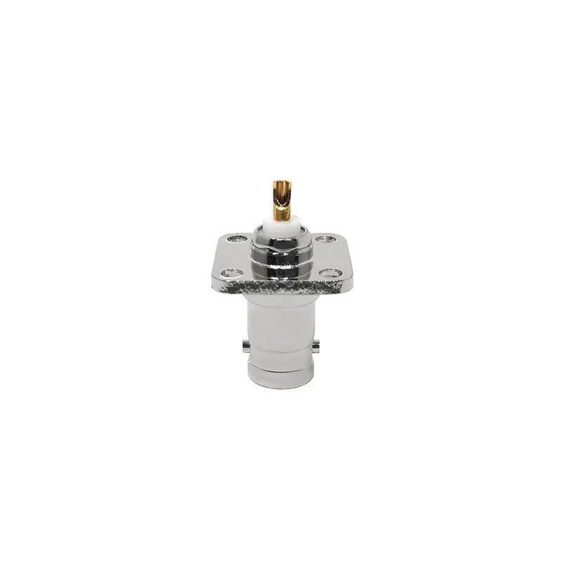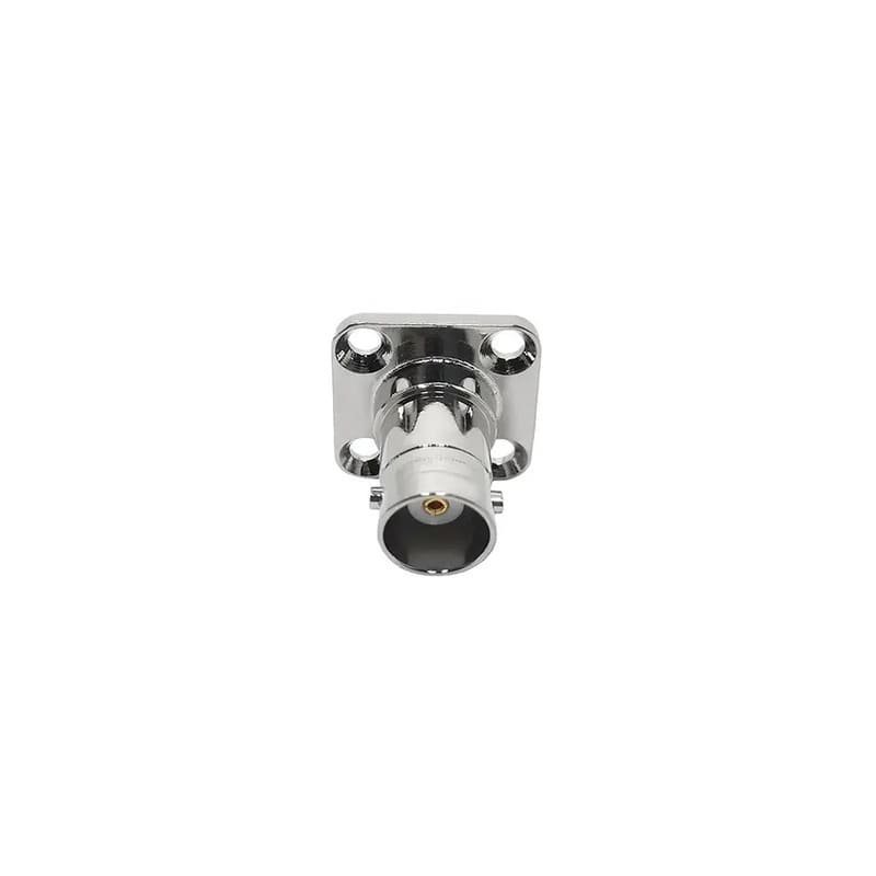 The BNC female 4-hole panel mount connector with a 12.7mm flange is a precision RF component designed for maximum space efficiency without compromising mechanical integrity. This variant features a 12.7mm square flange, providing the smallest standard footprint for a flange-mounted BNC interface. This makes it the premier choice for high-density equipment faces where space is at an absolute premium. The 4-hole mounting pattern ensures the connector remains perfectly fixed, providing far superior anti-rotation and vibration resistance compared to miniature bulkhead designs.