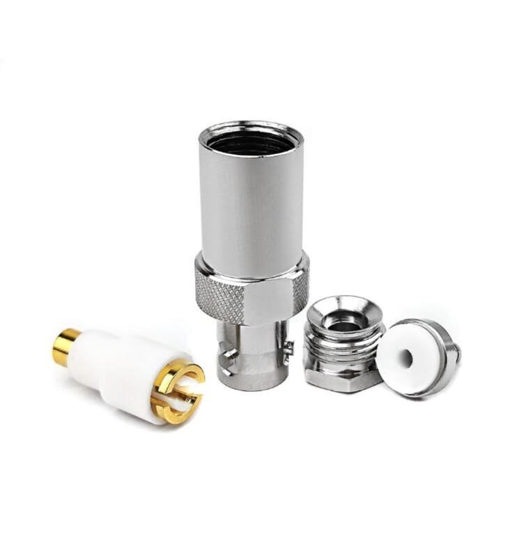 As a female interface (jack), it features the classic bayonet housing designed for rapid, vibration-resistant mating with BNC male plugs. Unlike crimp connectors, the clamp termination provides a high-pressure mechanical bond that ensures excellent grounding and shielding effectiveness without the need for specialized crimping dies. Manufactured with a durable nickel-plated brass body and premium PTFE (Teflon) insulation, it delivers consistent 50-Ohm performance and reliable signal integrity across a wide range of telecommunications, broadcast, and industrial applications.
