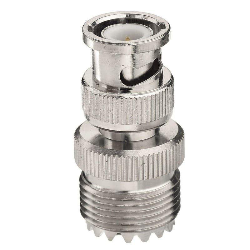 BNC Male to UHF Female Interface: Consists of a BNC Plug (with pin) and a UHF Jack (SO-239 with socket and external threads).