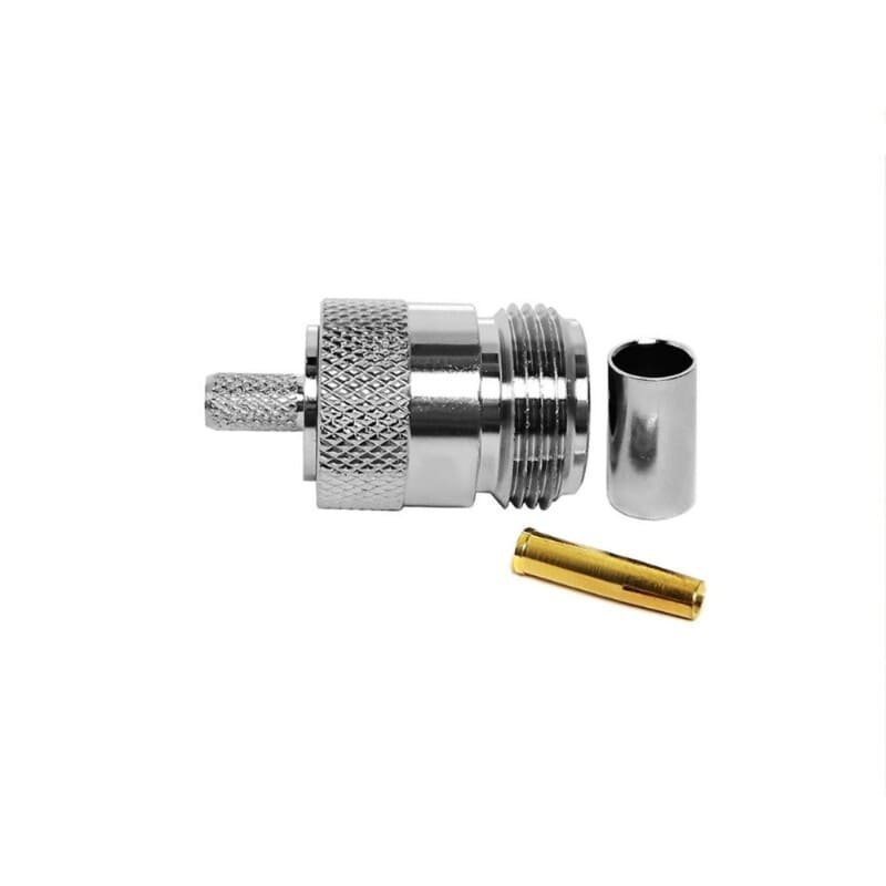 This connector utilizes a standard hex-crimp termination system for the outer conductor. This provides a high-strength, 360-degree mechanical bond that is highly resistant to pull-off and vibration, making it ideal for both mobile and fixed outdoor environments. Manufactured with a durable nickel-plated brass body and premium PTFE (Teflon) insulation, it delivers consistent 50-Ohm performance and low VSWR up to 11 GHz. The internal center contact is precision-machined to ensure a secure, low-resistance mating cycle with N-Type male plugs, maintaining signal integrity over the life of the installation.